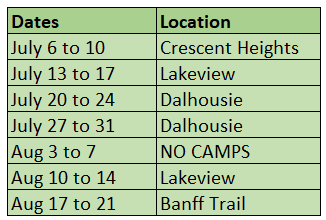 You can learn more about the camps by visiting the CAMP-THEMES page.